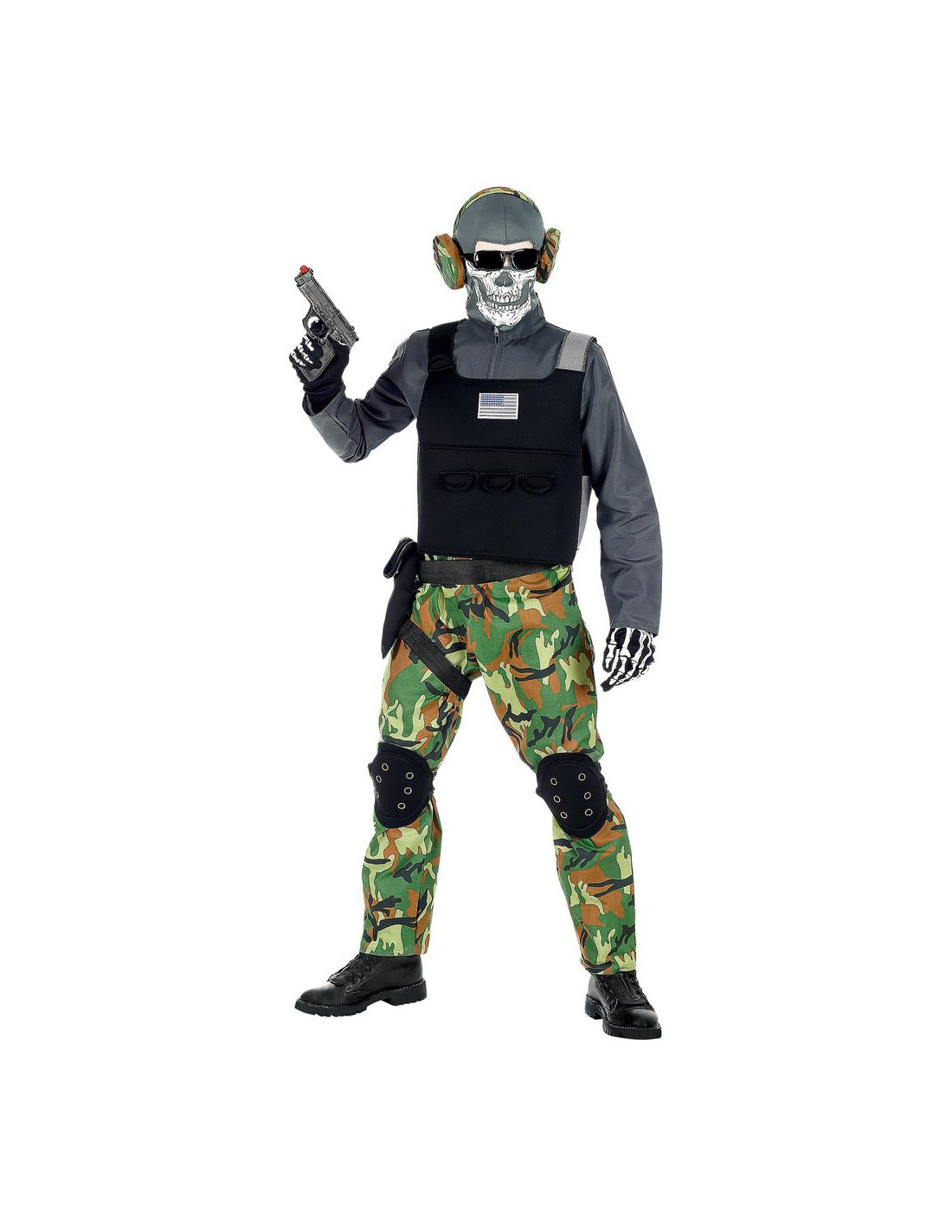 Incluye: Mono enterizo, Chaleco, Rodilleras, Cinturón. Funda, Máscara, Gafas y Casco.